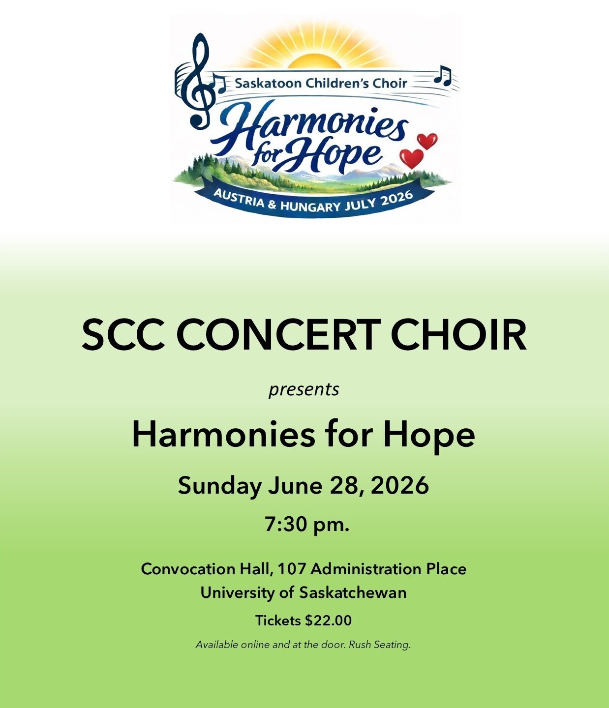 Experience Living Loud! An electrifying evening with SCC’s Concert Choir and a surprise Juno-nominated Canadian guest artist. Join us for a night of powerful music in support of the Concert Choir’s Harmonies for Hope tour this July.